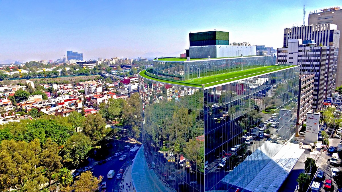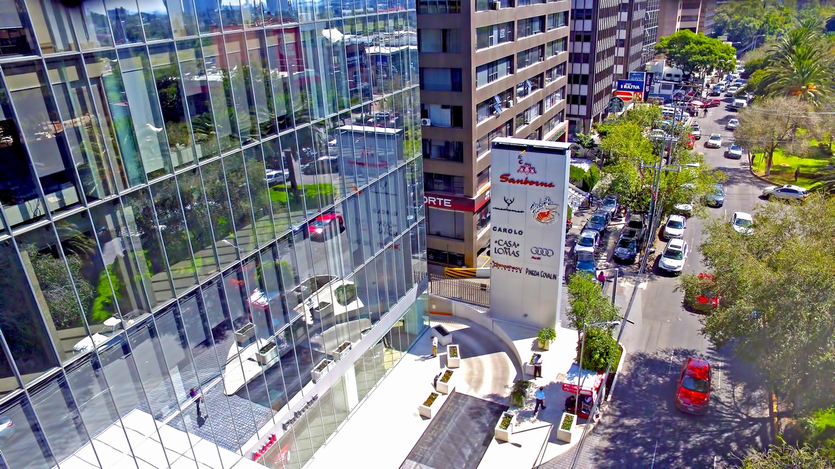 Building built on what was the famous Sanborns de Palmas that houses modern offices, as well as a shopping center.