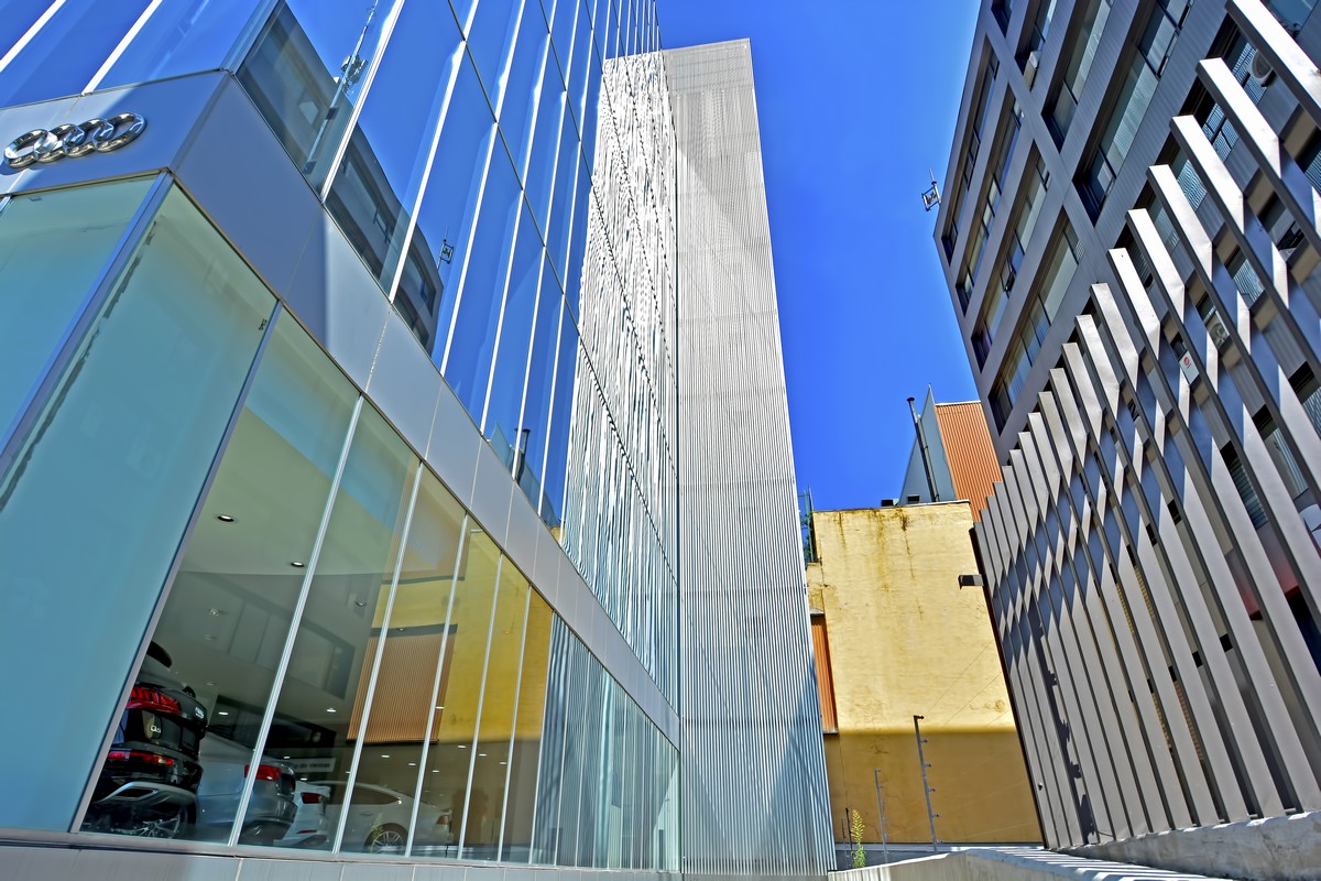 Among its finishes are aluminum profile coating, composite aluminum panels, aluminum composite interior staples in shopping center and aluminum Louvers in parking area.