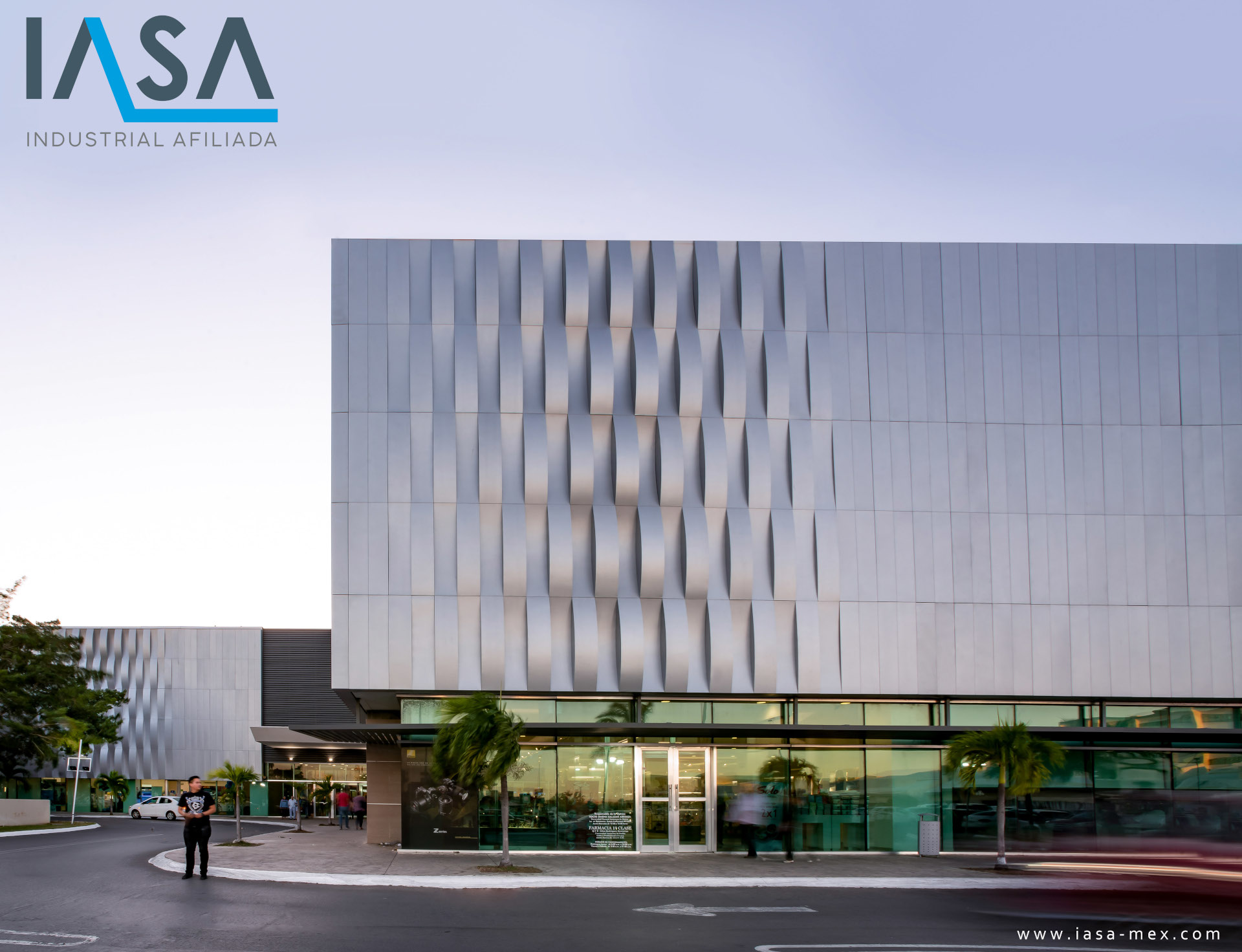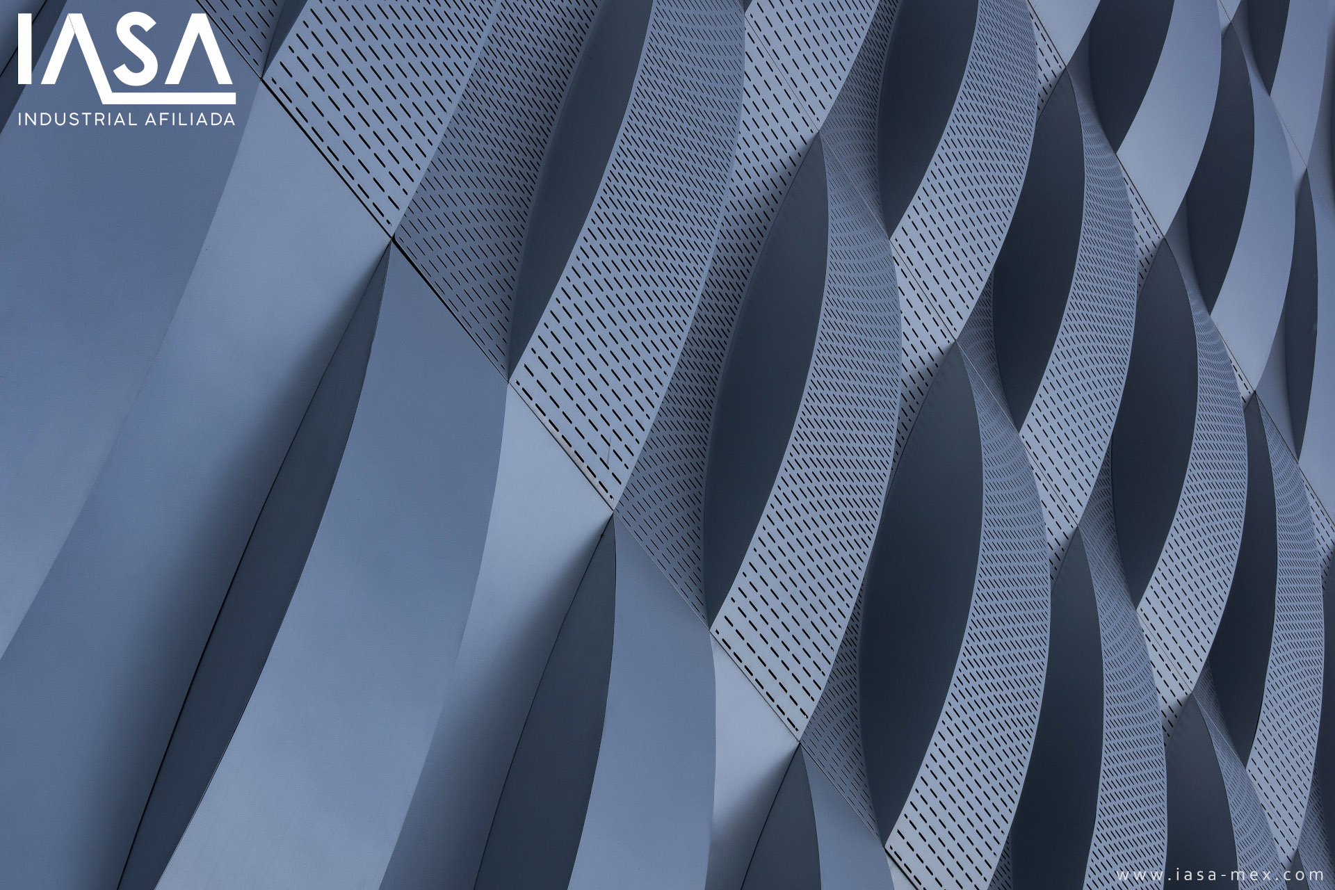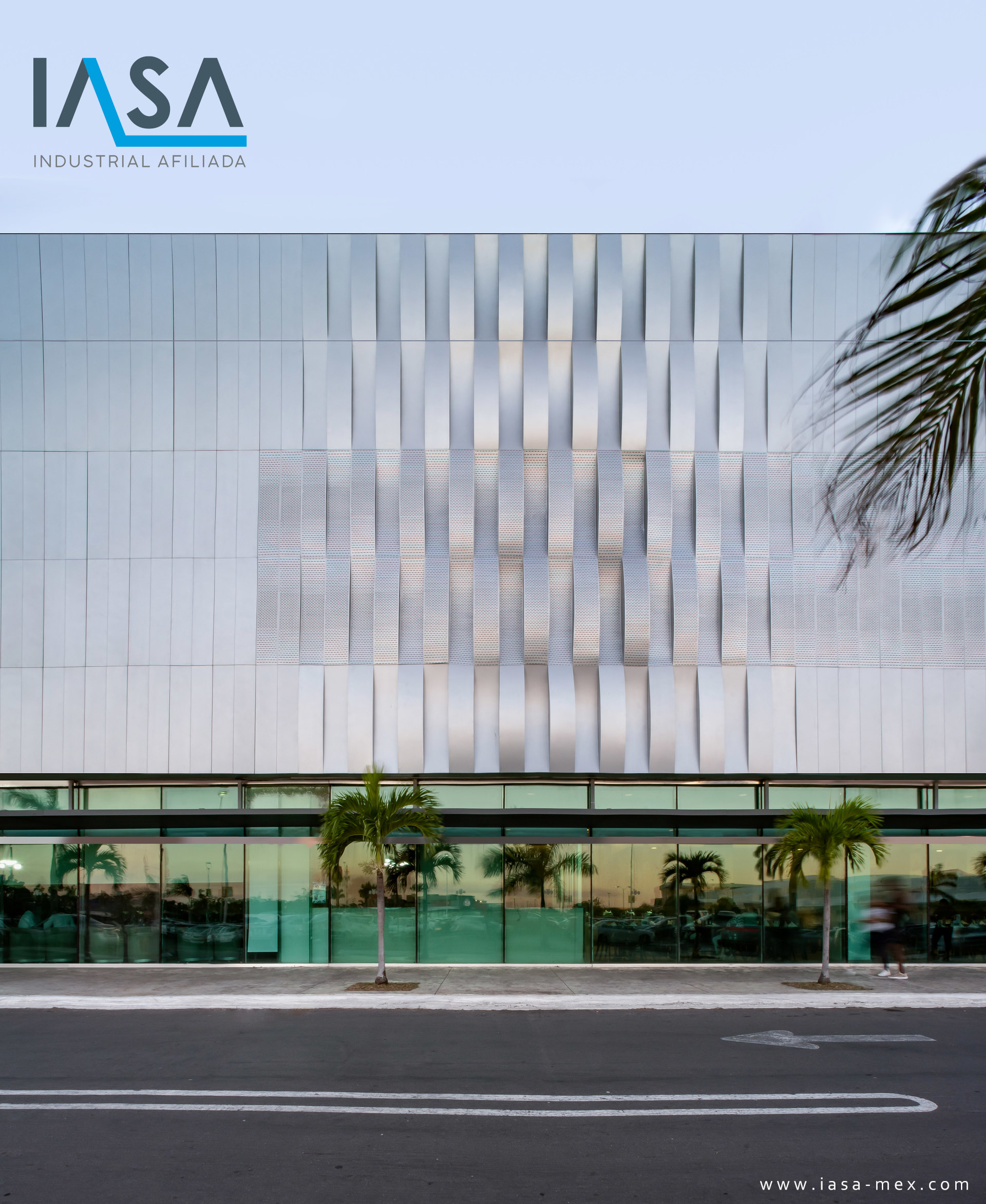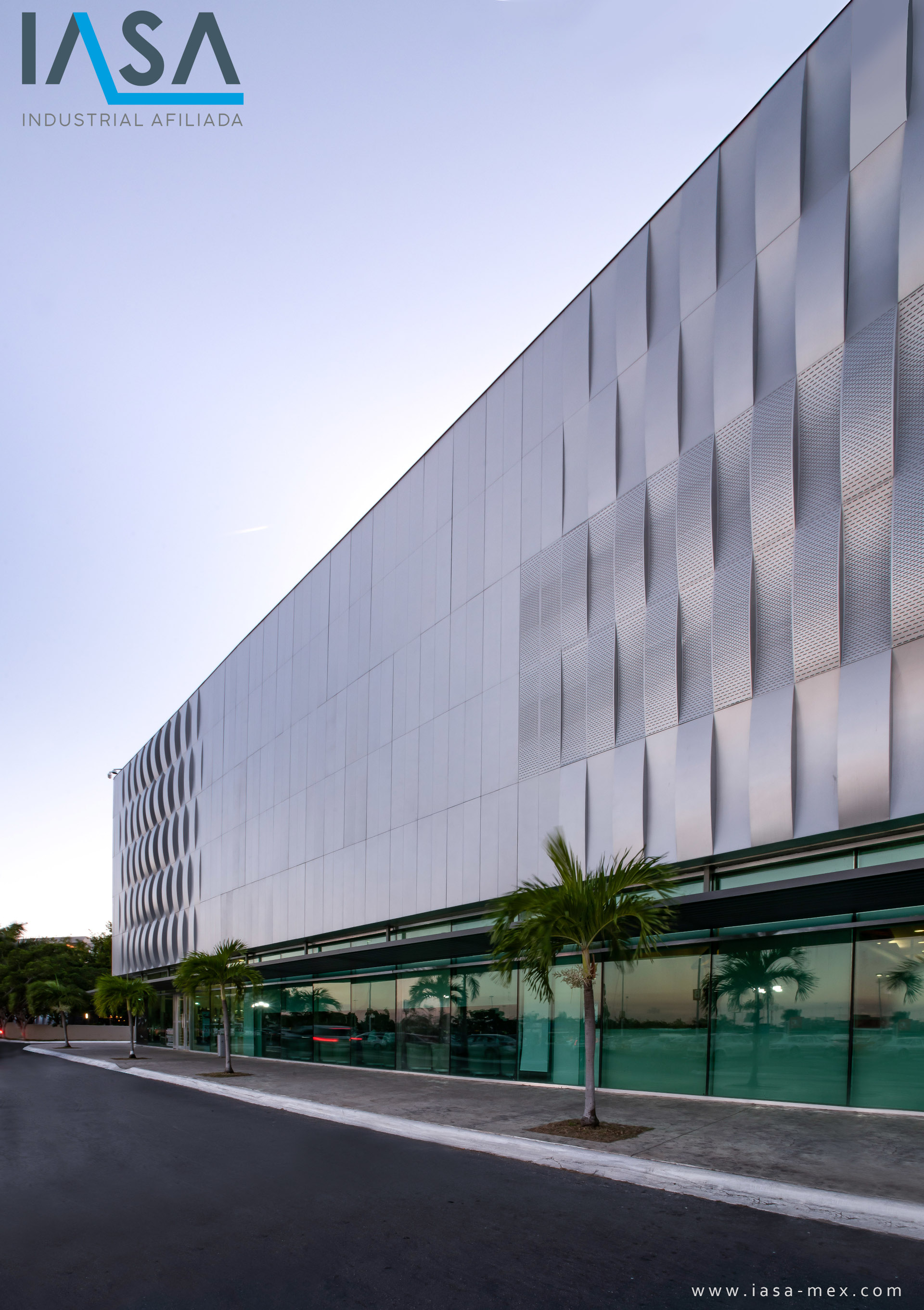 Some sections of the plaza with existing windows required to maintain the passage of light, however, in order not to break the continuity of the new façade design, custom perforated modules were designed which include oblong perforations that increase in density upon reaching the area of windows and gradually decreasing when moving away.